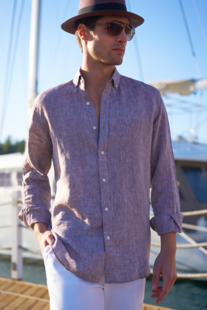 LAGRANZE MEN SHIRTS In an attractive plain colour, 100% linen men’s shirt is perfect for summer. Made from linen, it adds to